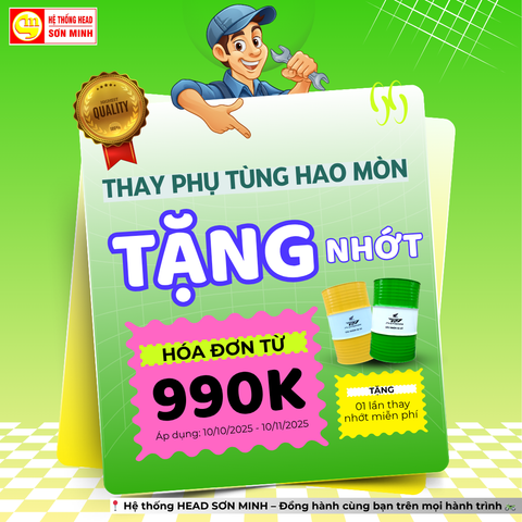 Khuyến mãi hấp dẫn tại HEAD Sơn Minh: Khi thay phụ tùng hao mòn Honda với hóa đơn từ 990.000đ, khách hàng được tặng 01 lần thay nhớt Pro Honda (nhớt phuy) chính hãng miễn phí. Áp dụng từ 10/10 –...