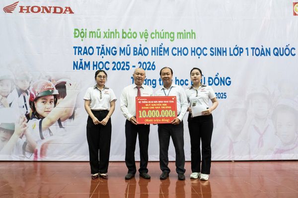 🔹 Trao tặng mũ bảo hiểm Honda đạt chuẩn đến toàn bộ học sinh của trường.