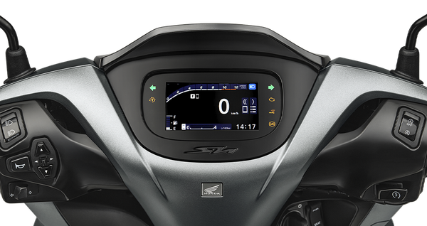 SH160i/125i 2026 là mẫu xe đầu tiên được trang bị màn hình TFT hiện đại của Honda Việt Nam, khẳng định vị thế dẫn dầu của phân khúc xe ga cao cấp. Màn hình TFT với chất lượng hình ảnh vượt trội, có thể hiển thị nhiều thông số với màu sắc phong phú và chân thực, nâng cao trải nghiệm lái. Mặt đồng hồ có kích thước 4,2 inch kết nối bluetooth với điện thoại thông minh (trên phiên bản xe SH160) nổi bật trên nền đen cùng thiết kế tối giản, hiện đại, đem đến nét sang trọng cho tổng thể cụm đồng hồ trung tâm.
